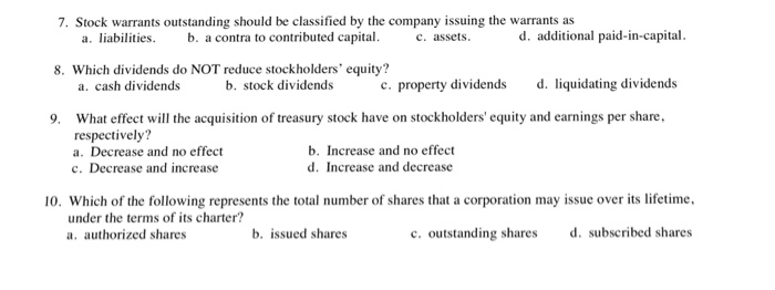 Solved Stock Warrants Outstanding Should Be Classified By Chegg Com